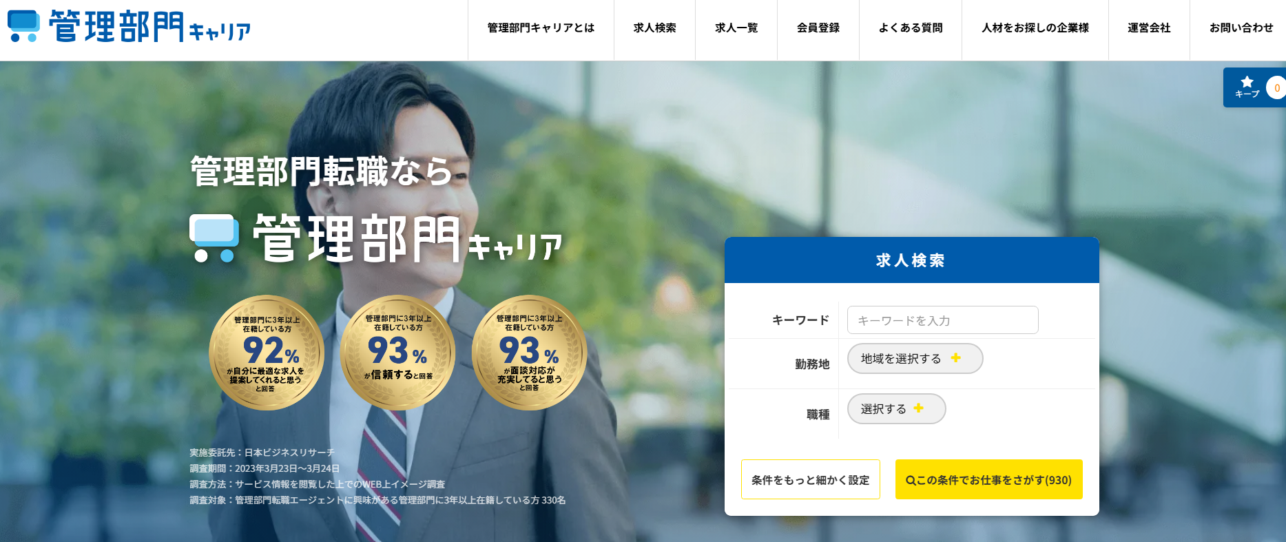 管理部門キャリア | 2500社以上のネットワークを保有 | 全国 | 特化 | 非公開 |